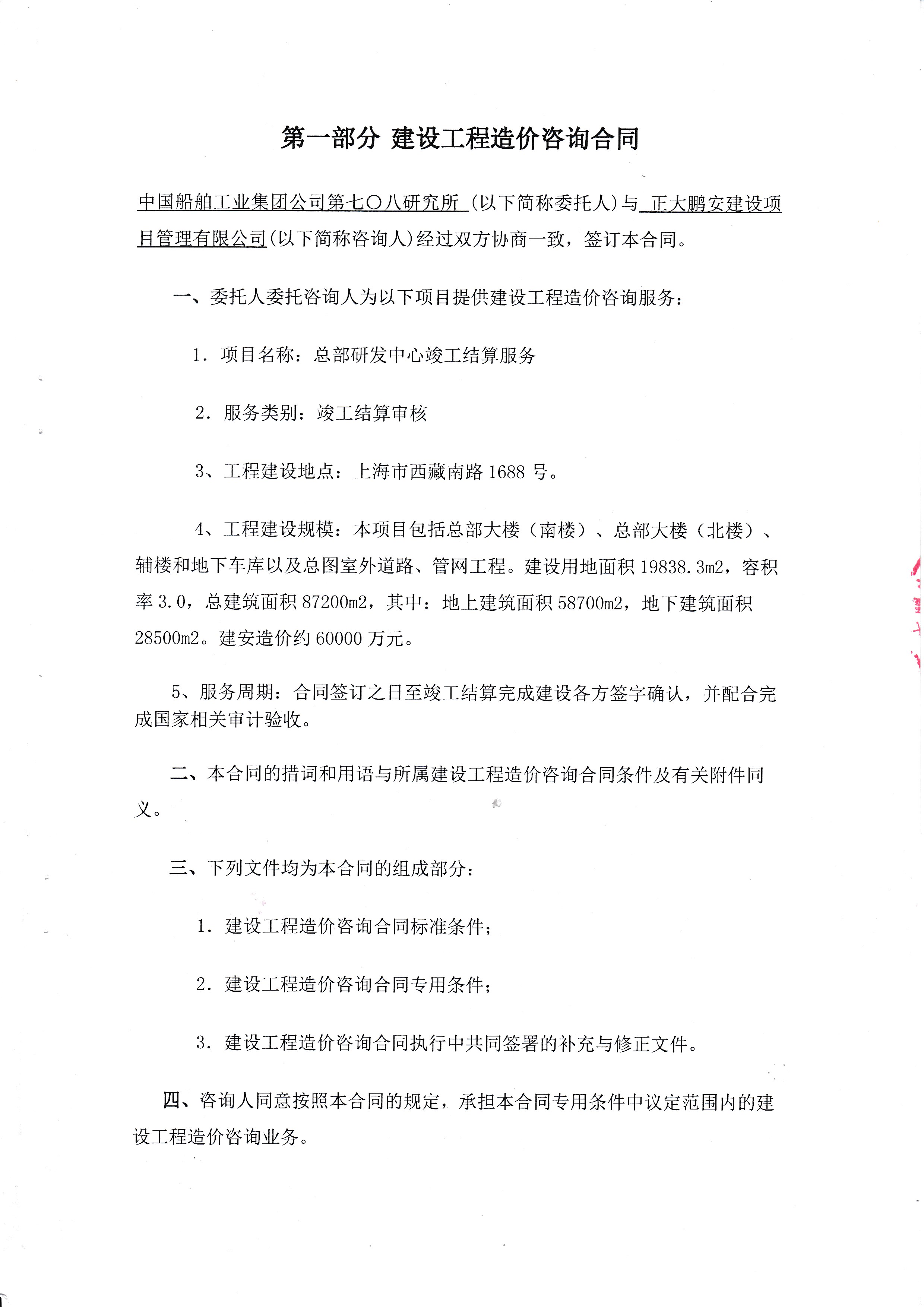 中國(guó)船舶工業(yè)集團(tuán)公司第七〇八研究所總部研發(fā)中心竣工結(jié)算