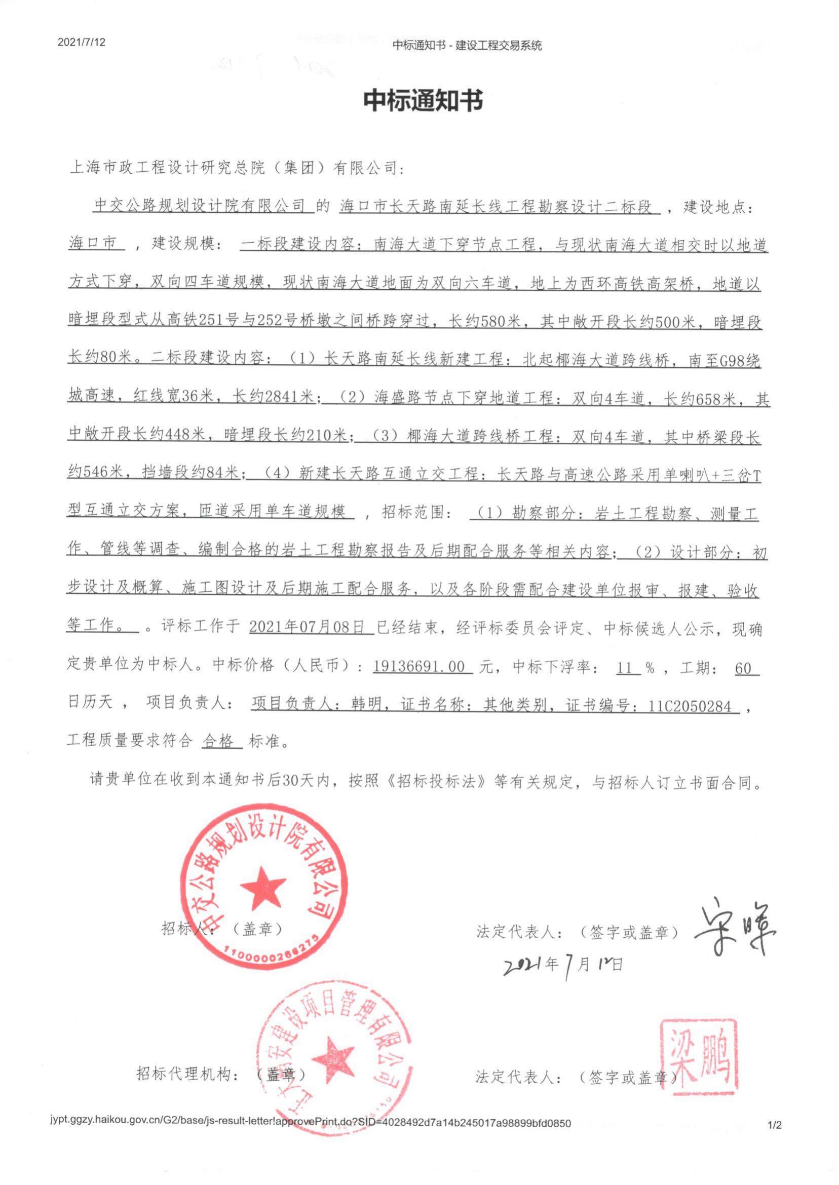 項(xiàng)目名稱:??谑虚L天路南延長線工程勘察設(shè)計(jì)