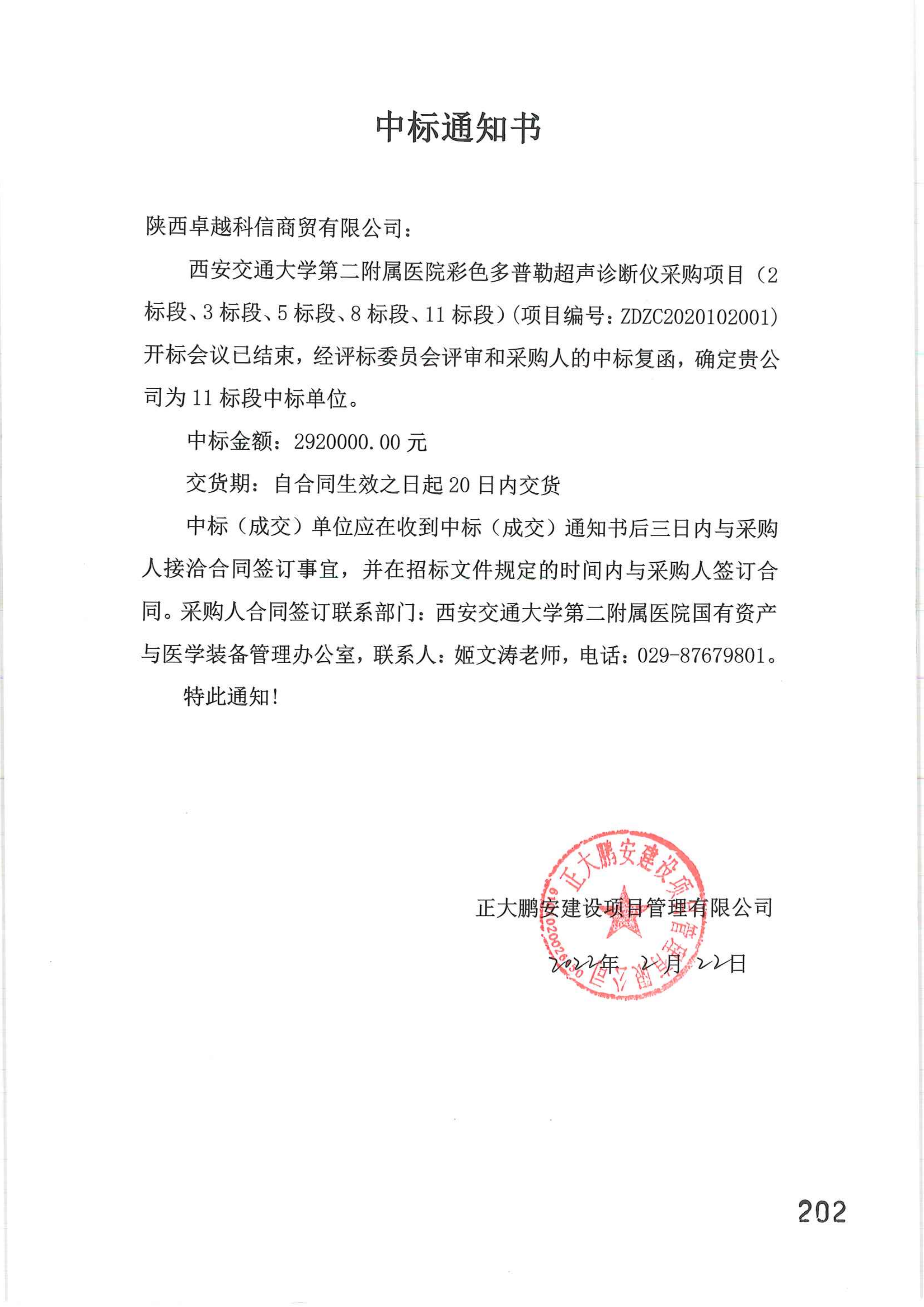 項(xiàng)目名稱:西安交通大學(xué)第二附屬醫(yī)院彩色多普勒超聲診斷儀采購項(xiàng)目(2標(biāo)段、3標(biāo)段、5標(biāo)段、8標(biāo)段、11標(biāo)段)
