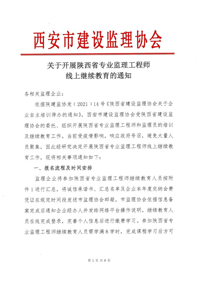 陜西省專業(yè)監(jiān)理工程師開展線上繼續(xù)教育