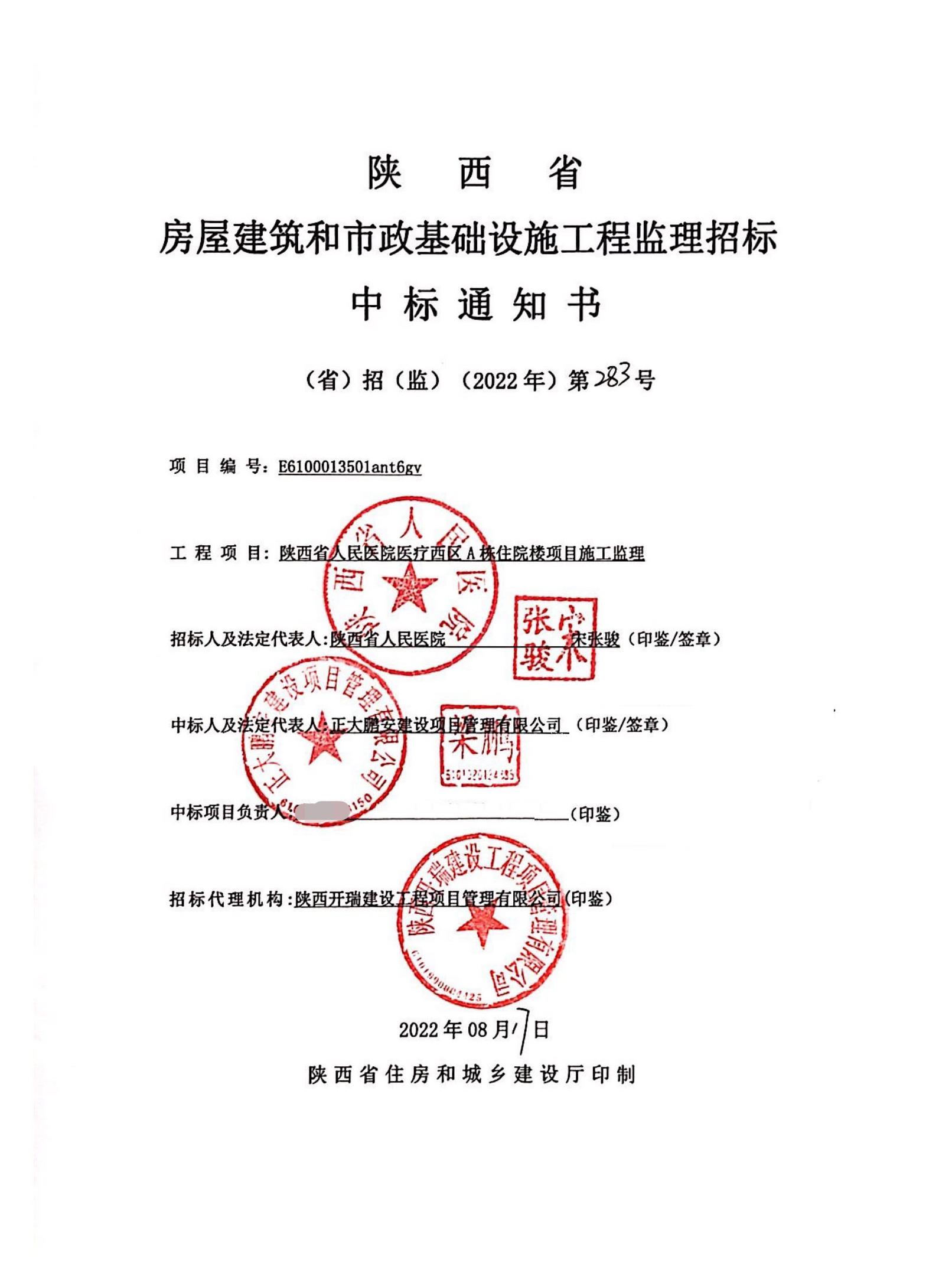 正大鵬安中標陜西省人民醫(yī)院醫(yī)療西區(qū)A棟住院樓項目施工監(jiān)理
