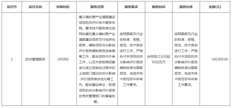 合同包1(集義鎮(zhèn)如意產(chǎn)業(yè)道路建設(shè)項(xiàng)目防洪評價(jià)技術(shù)服務(wù)采購項(xiàng)目):