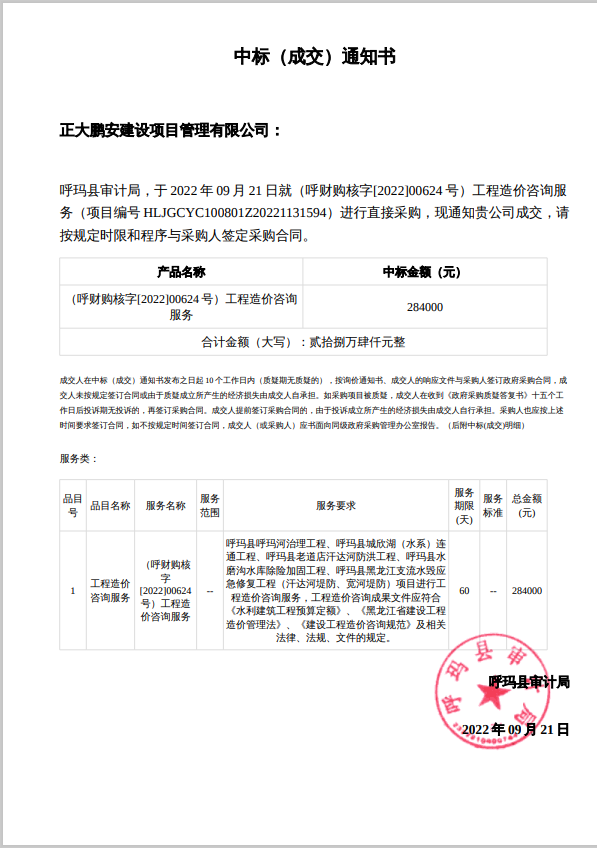 正大鵬安中標(biāo)(呼財(cái)購(gòu)核字[2022)00624號(hào))工程造價(jià)咨詢服務(wù)