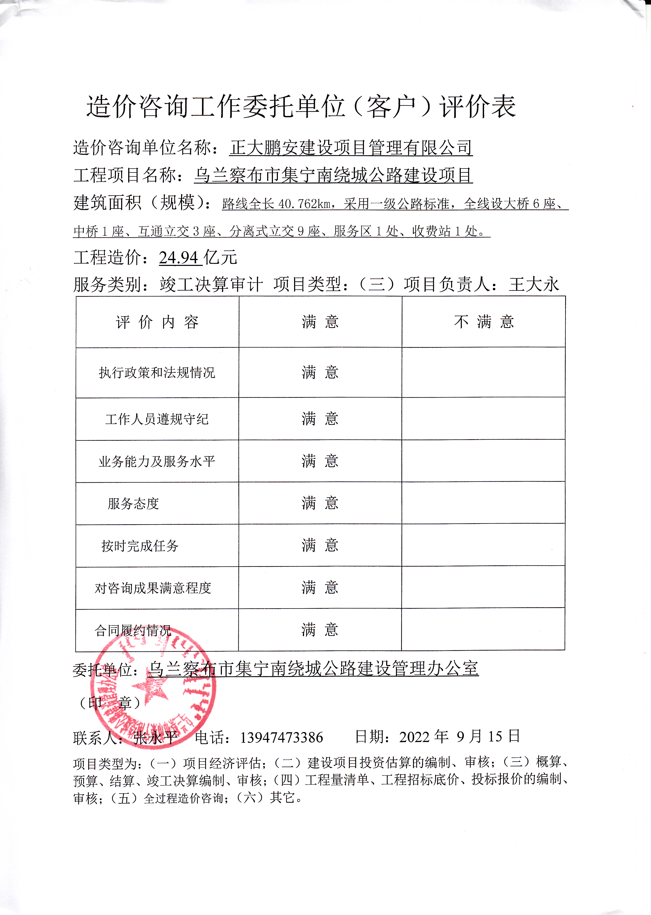 委托人:烏蘭察布市集寧南繞城公路建設(shè)管理辦公室