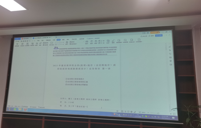 建安商學院副總工程師董工以全過程工程咨詢貫宣文件為切入點,結(jié)合自身從業(yè)經(jīng)驗,介紹了全過程工程咨詢提出的背景、相關(guān)政策,分析了企業(yè)開展全過程工程咨詢的優(yōu)勢和挑戰(zhàn),并結(jié)合具體業(yè)績案例,講解了全過程工程咨詢項目合同簽訂,各階段主要工作內(nèi)容等。會后與參會人員進行了討論。