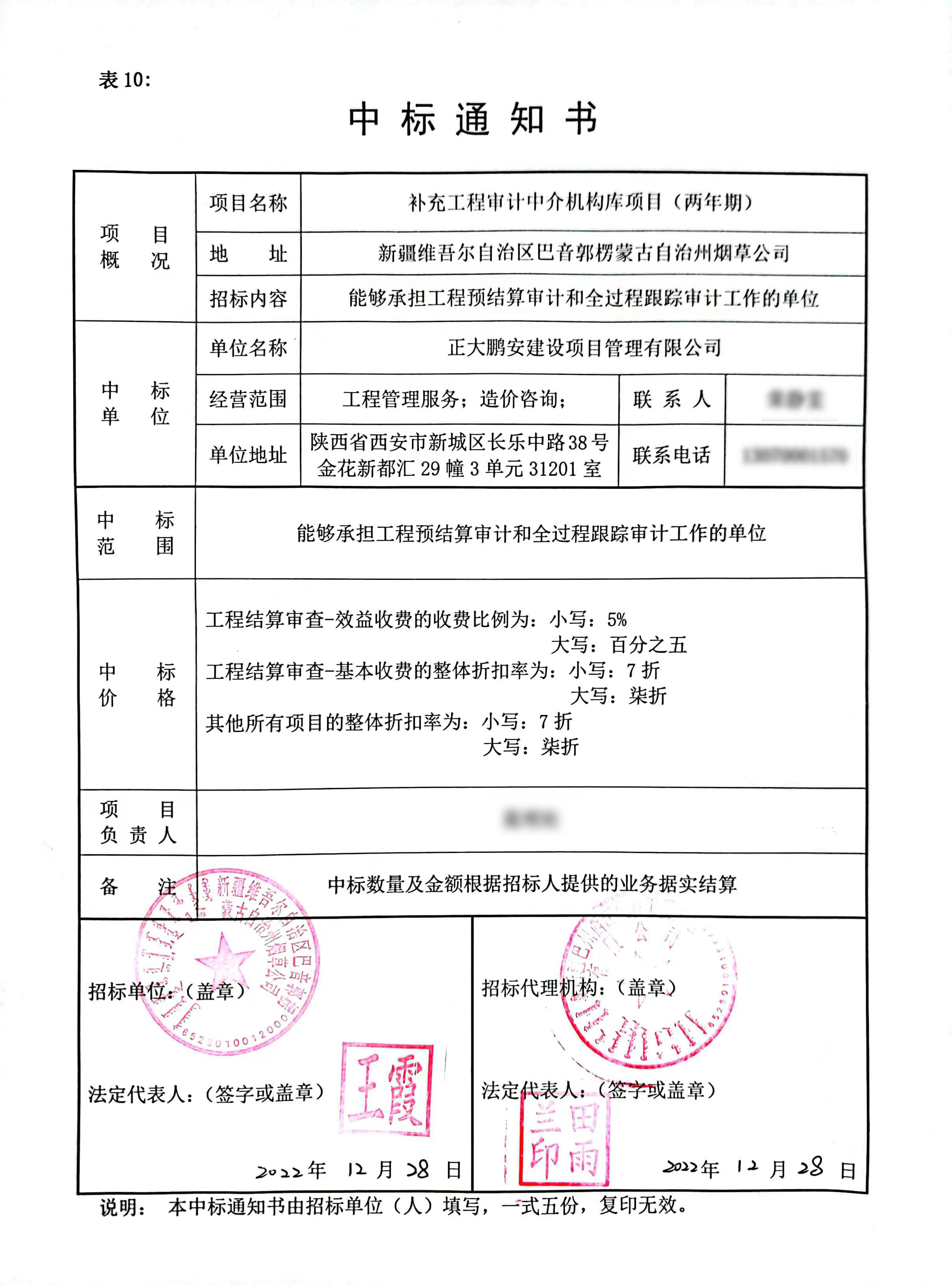 2022年12月,經(jīng)評(píng)標(biāo)委員會(huì)評(píng)定,招標(biāo)人確認(rèn),正大鵬安建設(shè)項(xiàng)目管理有限公司入圍新疆維吾爾自治區(qū)巴音郭楞蒙古自治州煙草公司的“補(bǔ)充工程審計(jì)中介機(jī)構(gòu)庫(kù)項(xiàng)目(兩年期)”項(xiàng)目。