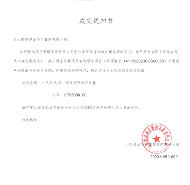 正大鵬安中標呂梁市老舊小區(qū)綜合改造(濱河街道辦)二期工程全過程造價咨詢服務(wù)項目