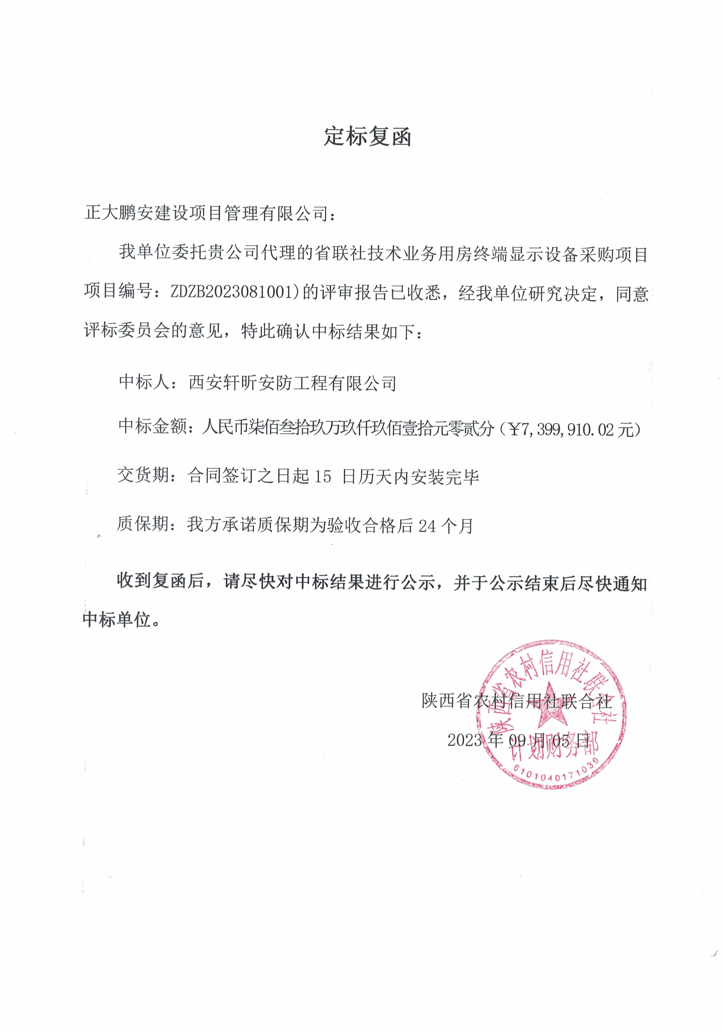 省聯(lián)社技術(shù)與業(yè)務(wù)用房終端顯示設(shè)備采購項目
