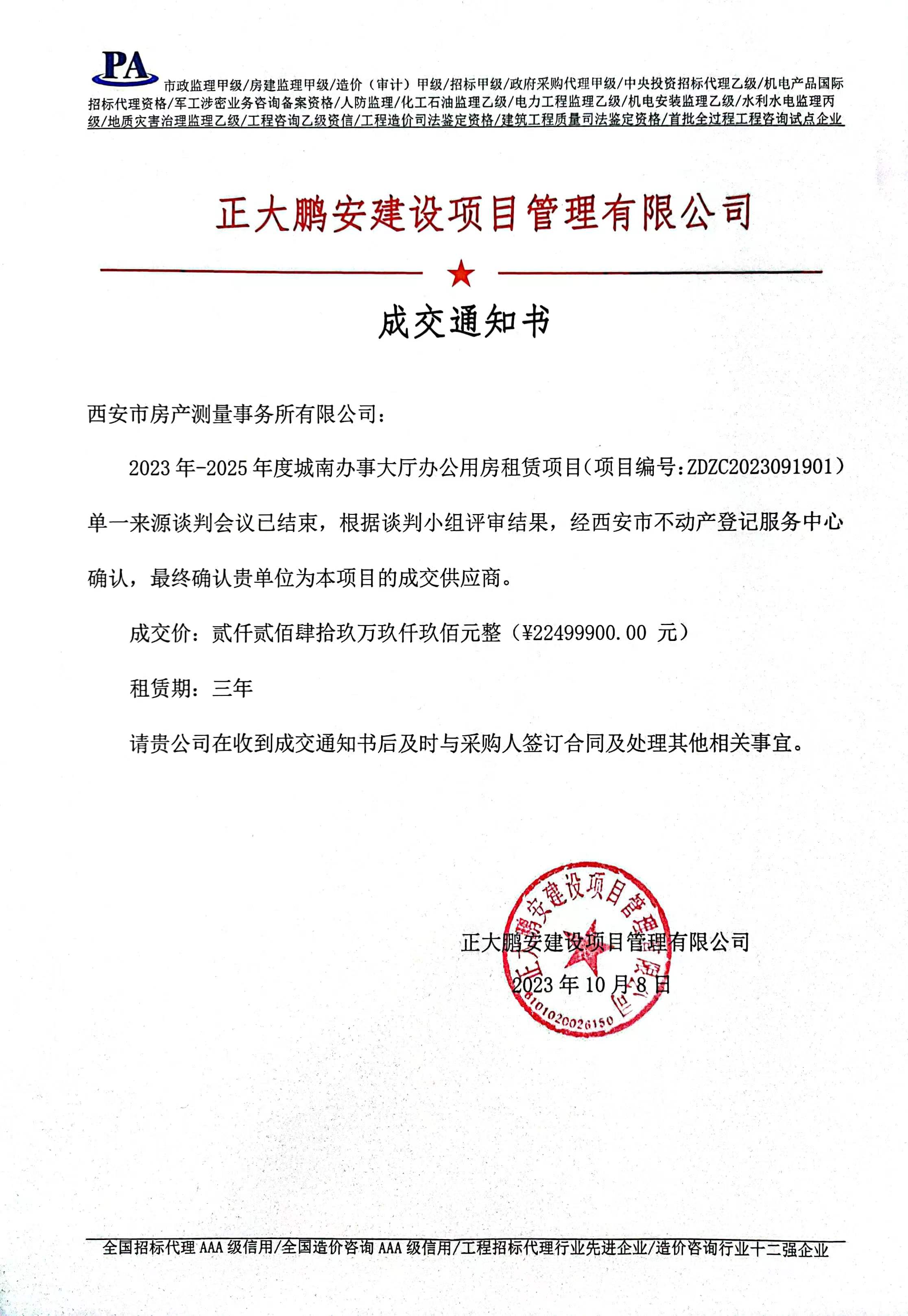 項目名稱:2023年-2025年度城南辦事大廳辦公用房租賃項目
