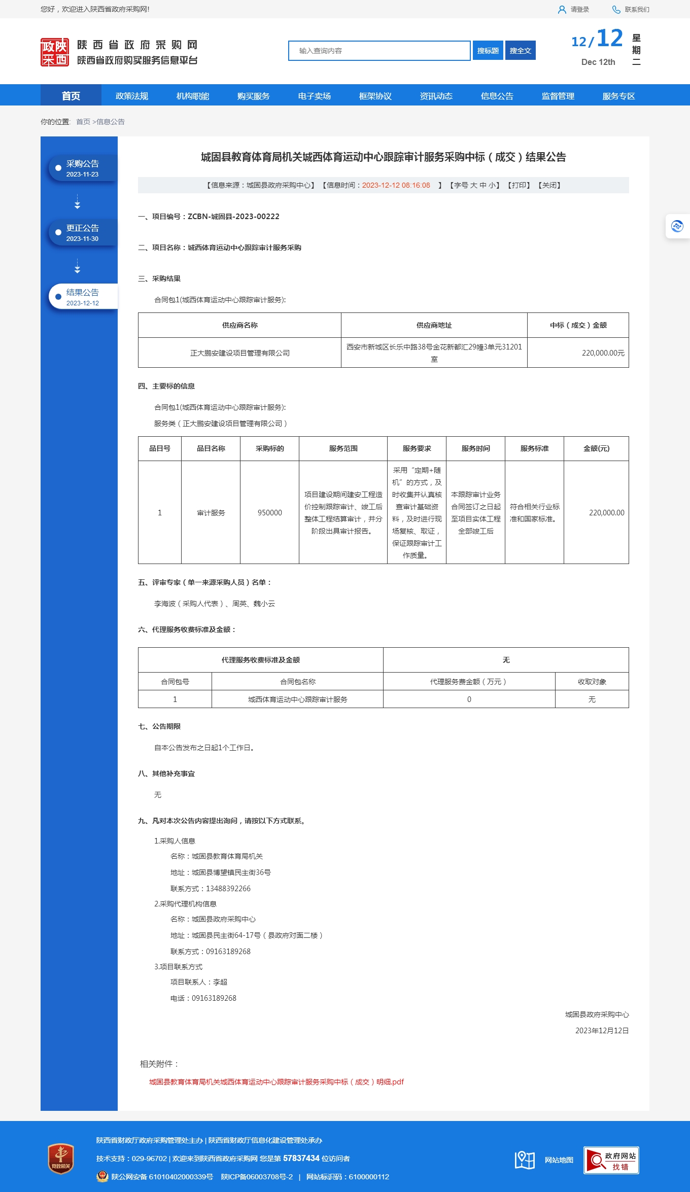 正大鵬安中標(biāo)城固縣教育體育局機(jī)關(guān)城西體育運(yùn)動(dòng)中心跟蹤審計(jì)服務(wù)項(xiàng)目