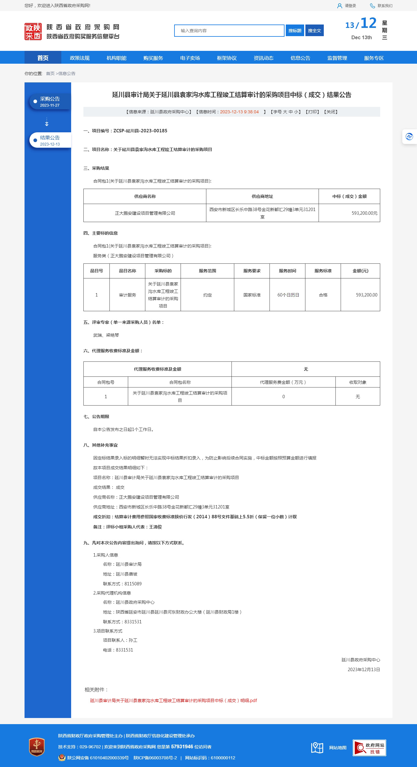 正大鵬安中標延川縣審計局關(guān)于延川縣袁家溝水庫工程竣工結(jié)算審計的采購項目