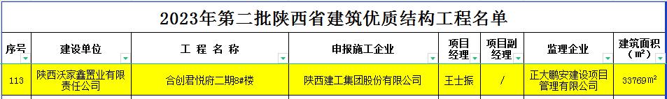 近日,陜西省建筑業(yè)協(xié)會(huì)公布2023年第二批陜西省建筑優(yōu)質(zhì)結(jié)構(gòu)工程名單,正大鵬安公司監(jiān)理的合創(chuàng)君悅府二期8#樓獲得“陜西省優(yōu)質(zhì)結(jié)構(gòu)工程”稱號(hào)。