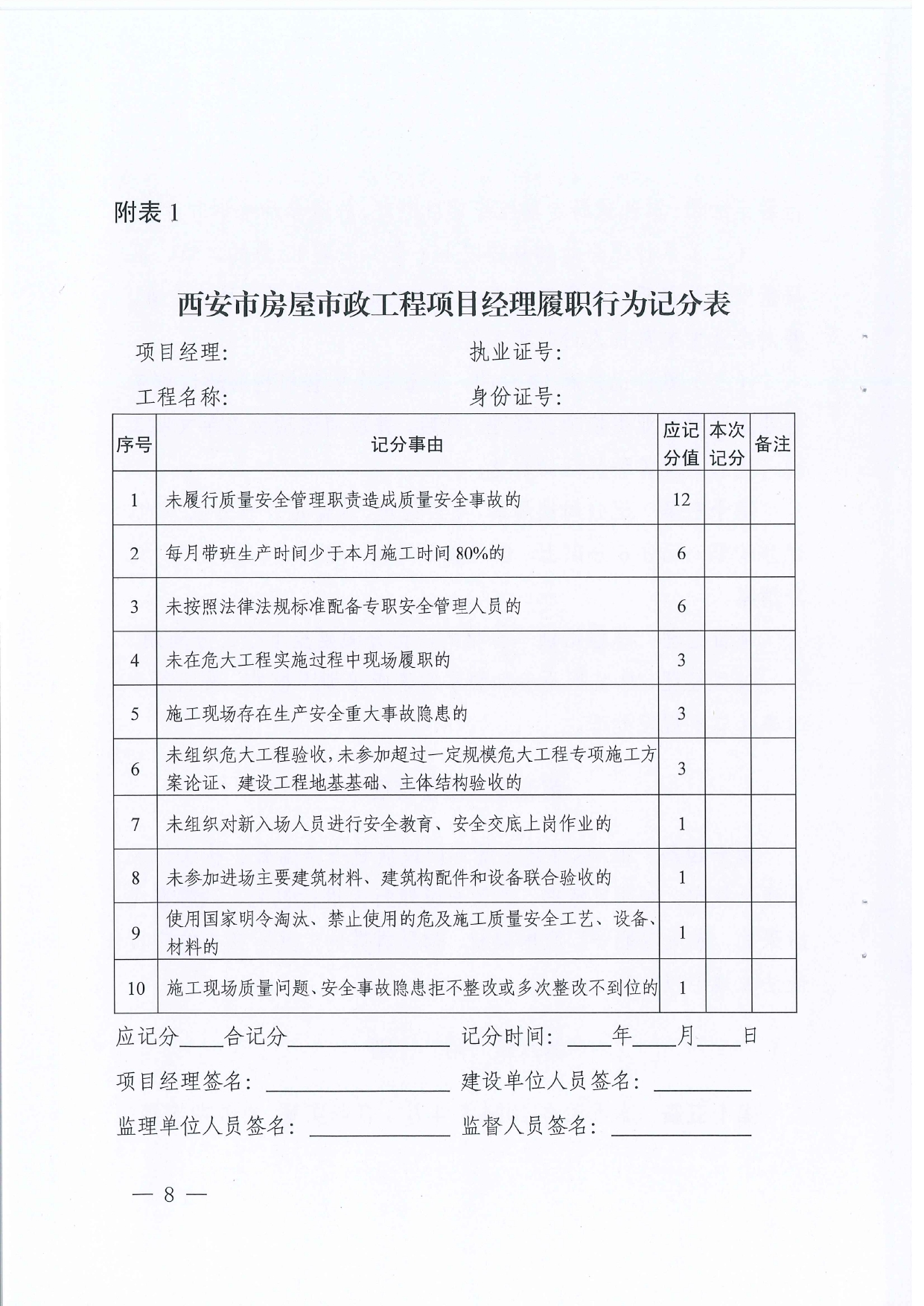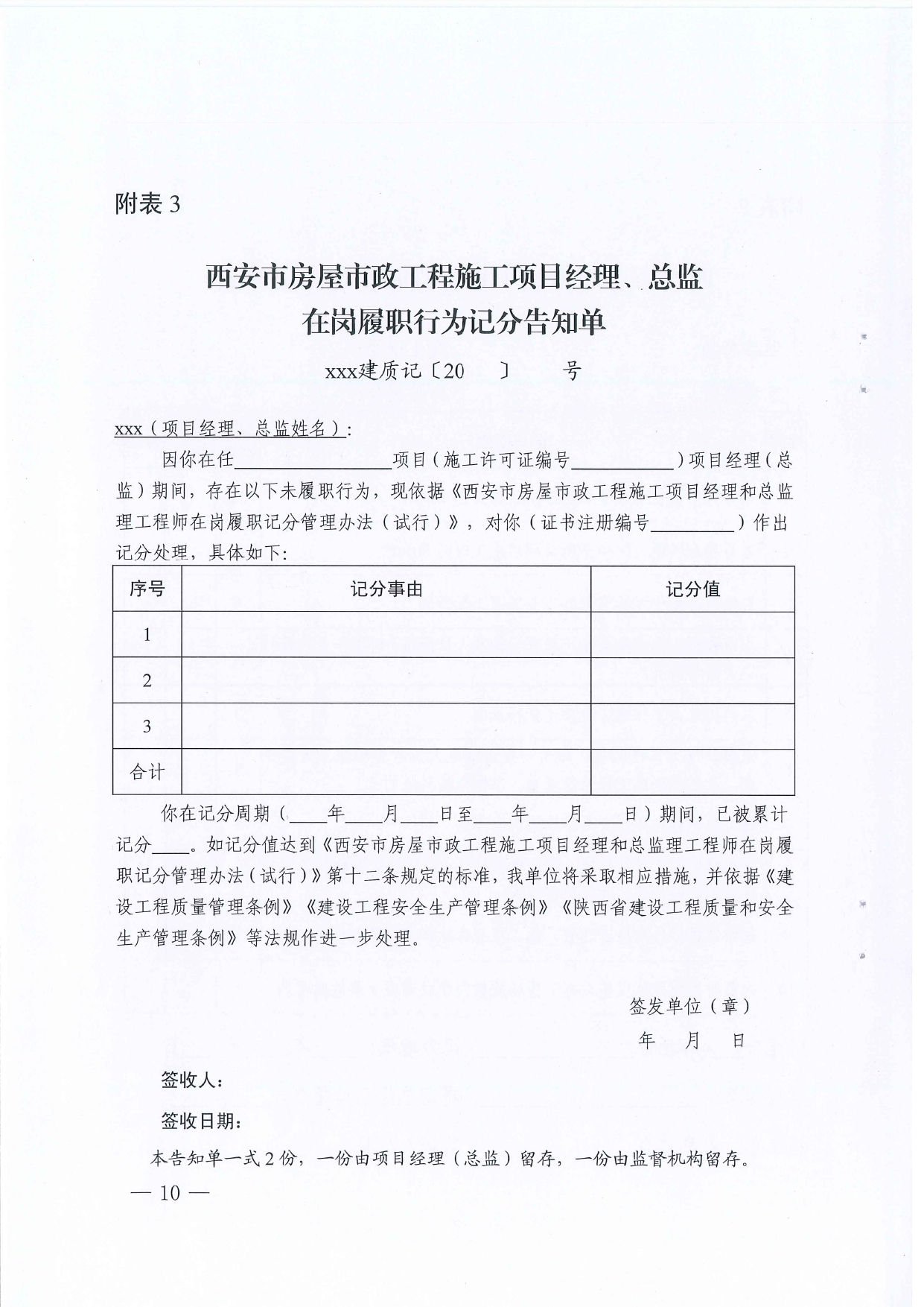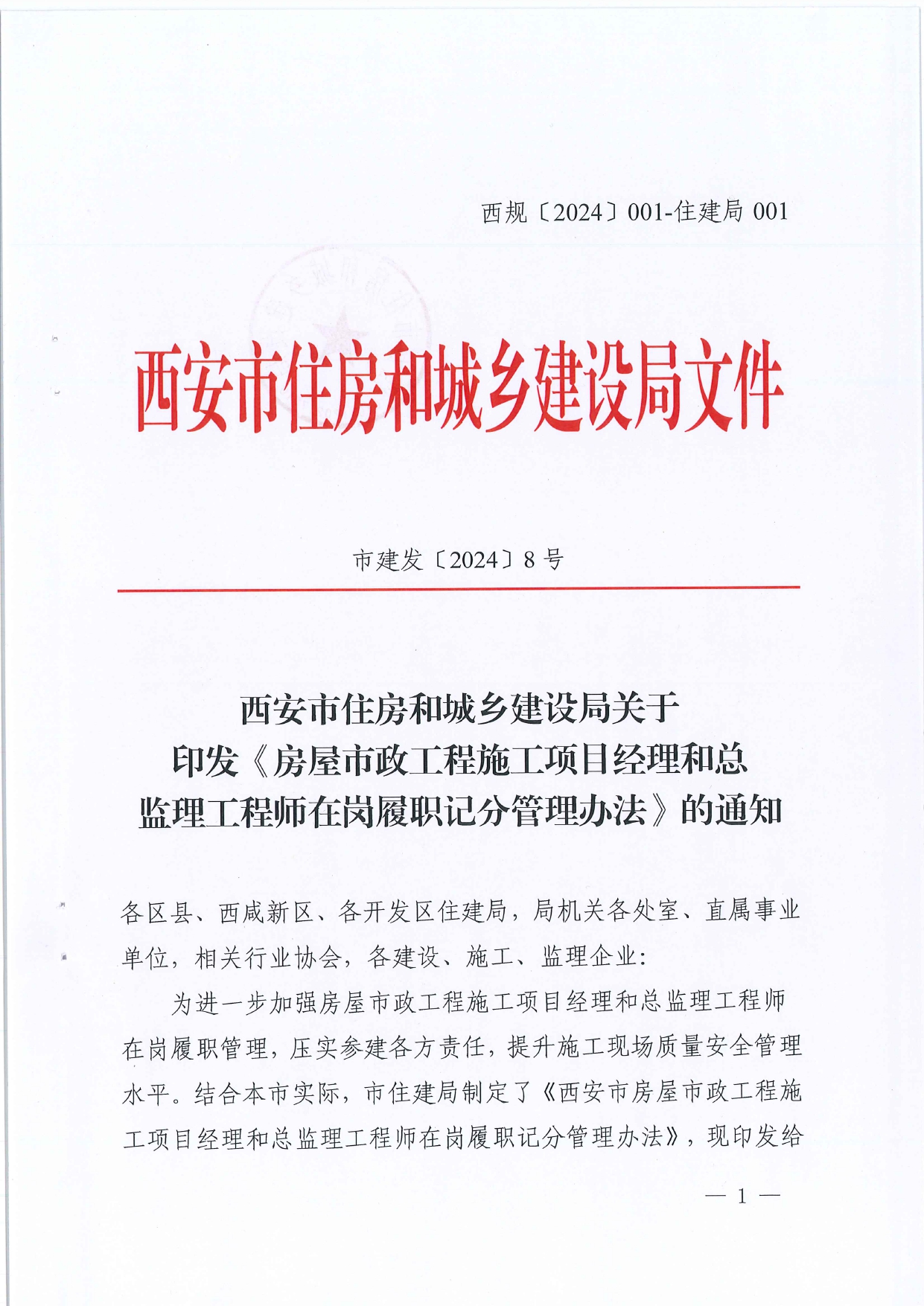 西安市住房和城鄉(xiāng)建設局關于印發(fā)《房屋市政工程施工項目經(jīng)理和總監(jiān)理工程師在崗履職記分管理辦法》的通知