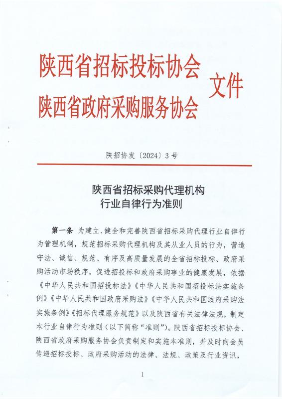 陜西省招標(biāo)采購代理機(jī)構(gòu)行業(yè)自律行為準(zhǔn)則