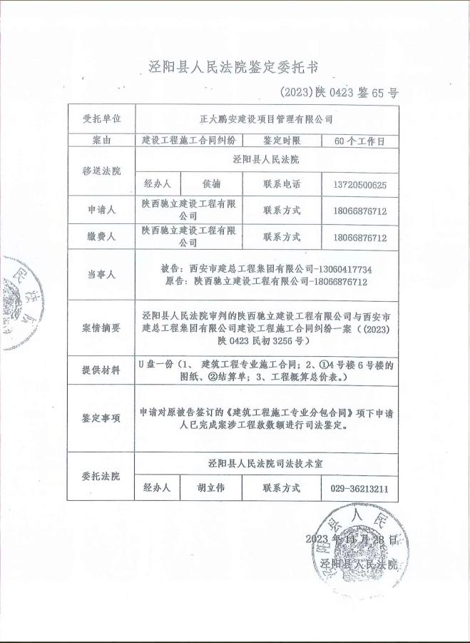 項目名稱:陜西馳立建設(shè)工程有限公司與西安市建總工程集團有限公司建設(shè)工程施工合同糾紛一案
