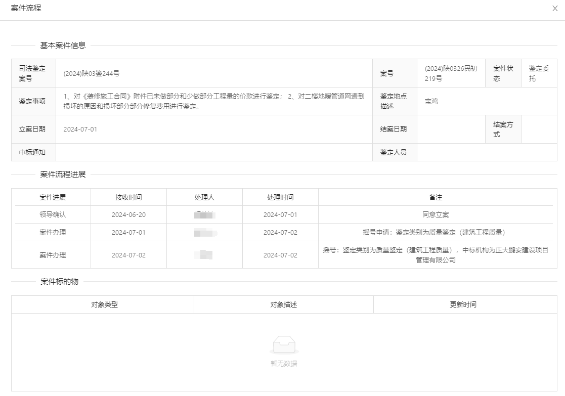 2024年7月1日,經(jīng)寶雞市中級人民法院確認,正大鵬安建設(shè)項目管理有限公司中標“原告西安盛景富邦裝飾工程有限公司與被告陜西龍創(chuàng)信達汽車服務(wù)有限公司建設(shè)工程施工合同糾紛一案”工程質(zhì)量及工程造價司法鑒定項目。