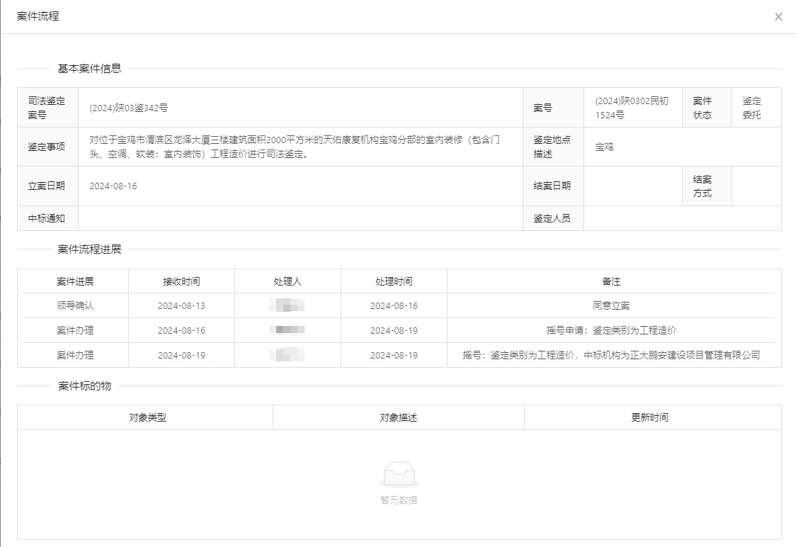 2024年8月16日,經(jīng)寶雞市中級(jí)人民法院確認(rèn),正大鵬安建設(shè)項(xiàng)目管理有限公司中標(biāo)"原告陜西惠享天成建設(shè)有限公司與被告寶雞惠佳康復(fù)醫(yī)療有限公司裝修施工合同糾紛一案”造價(jià)鑒定項(xiàng)目。