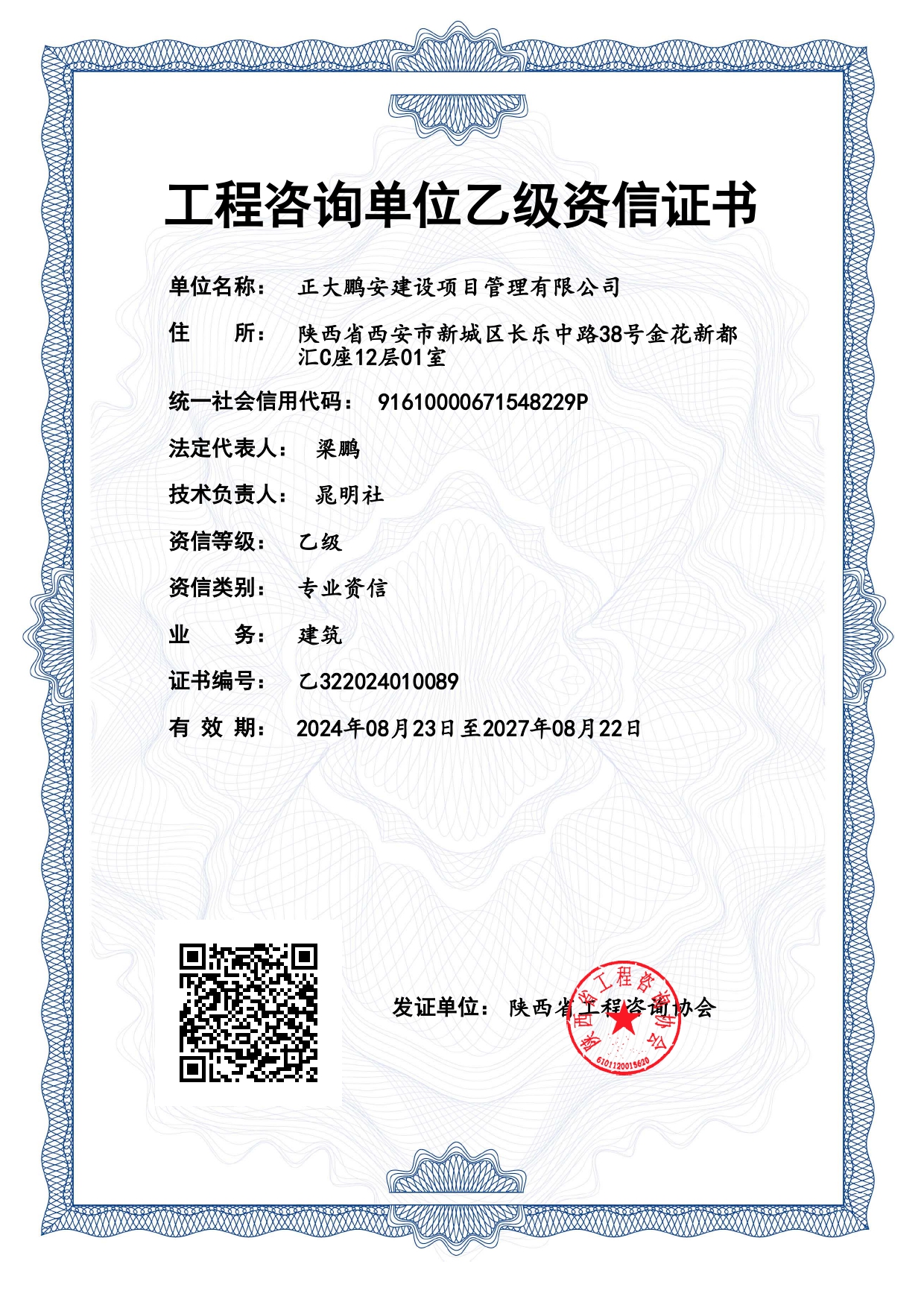 喜報!正大鵬安公司順利通過工程咨詢單位乙級資信評價
