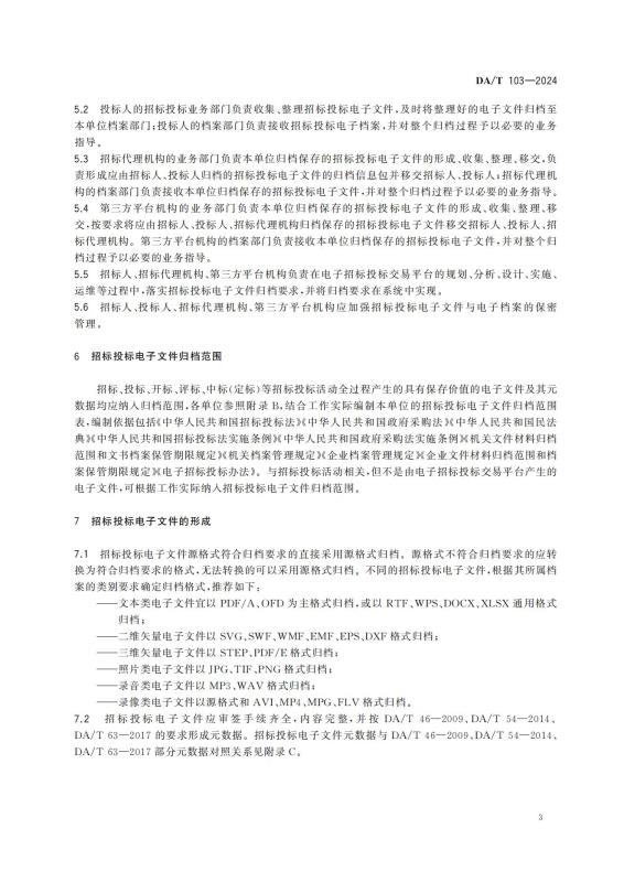 近日,國(guó)家檔案局發(fā)布《招標(biāo)投標(biāo)電子文件歸檔規(guī)范》行業(yè)標(biāo)準(zhǔn)?!墩袠?biāo)投標(biāo)電子文件歸檔規(guī)范》規(guī)定了招標(biāo)投標(biāo)交易平臺(tái)形成電子文件歸檔的一般方法,涵蓋了招標(biāo)投標(biāo)電子文件歸檔范圍以及招標(biāo)投標(biāo)電子文件的形成、收集、整理、歸檔、系統(tǒng)功能接口等多方面的指標(biāo)和要求,為推行招標(biāo)投標(biāo)電子檔案“單套制”管理提供了一種技術(shù)方案。標(biāo)準(zhǔn)將于2025年2月1日起實(shí)施。