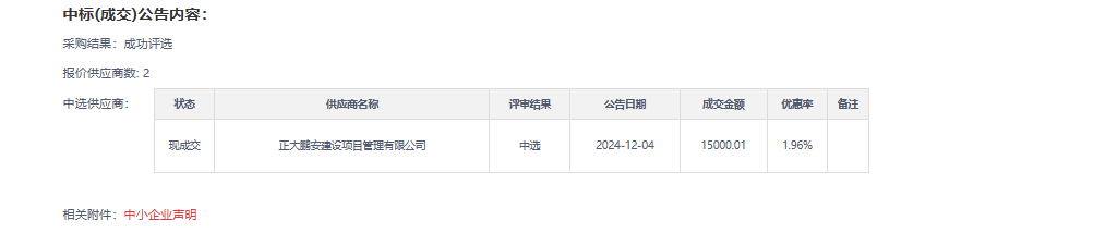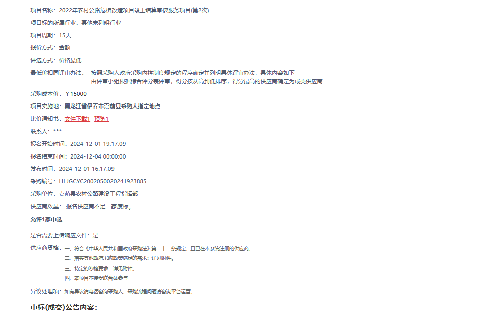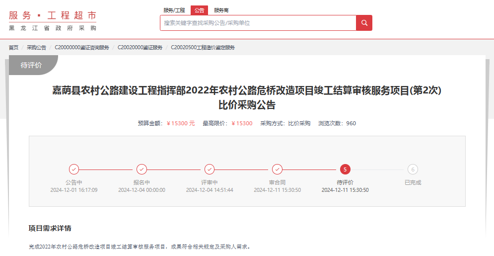 2024年12月11日,經評標委員會綜合評審,招標人確認,正大鵬安建設項目管理有限公司中標嘉蔭縣農村公路建設工程指揮部2022年農村公路危橋改造項目竣工結算審核服務項目。
