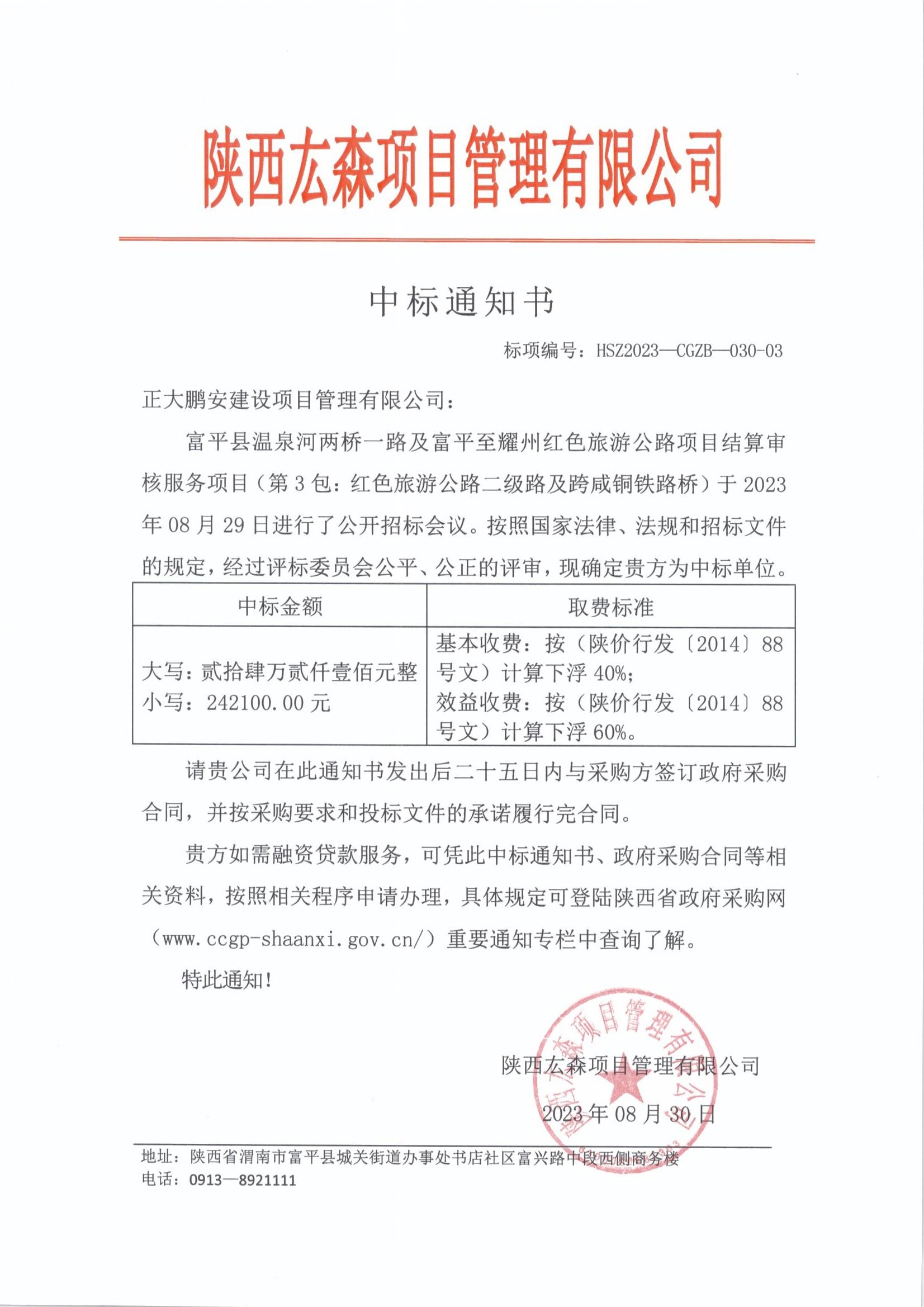 富平縣溫泉河兩橋一路及富平至耀州紅色旅游公路項(xiàng)目結(jié)算審核服務(wù)項(xiàng)目(第3包:紅色旅游公路二級路及跨咸銅鐵路橋)