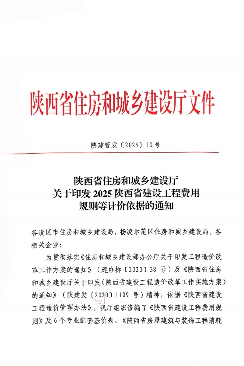 關(guān)于印發(fā)2025陜西省建設(shè)工程費(fèi)用規(guī)則等計(jì)價(jià)依據(jù)的通知