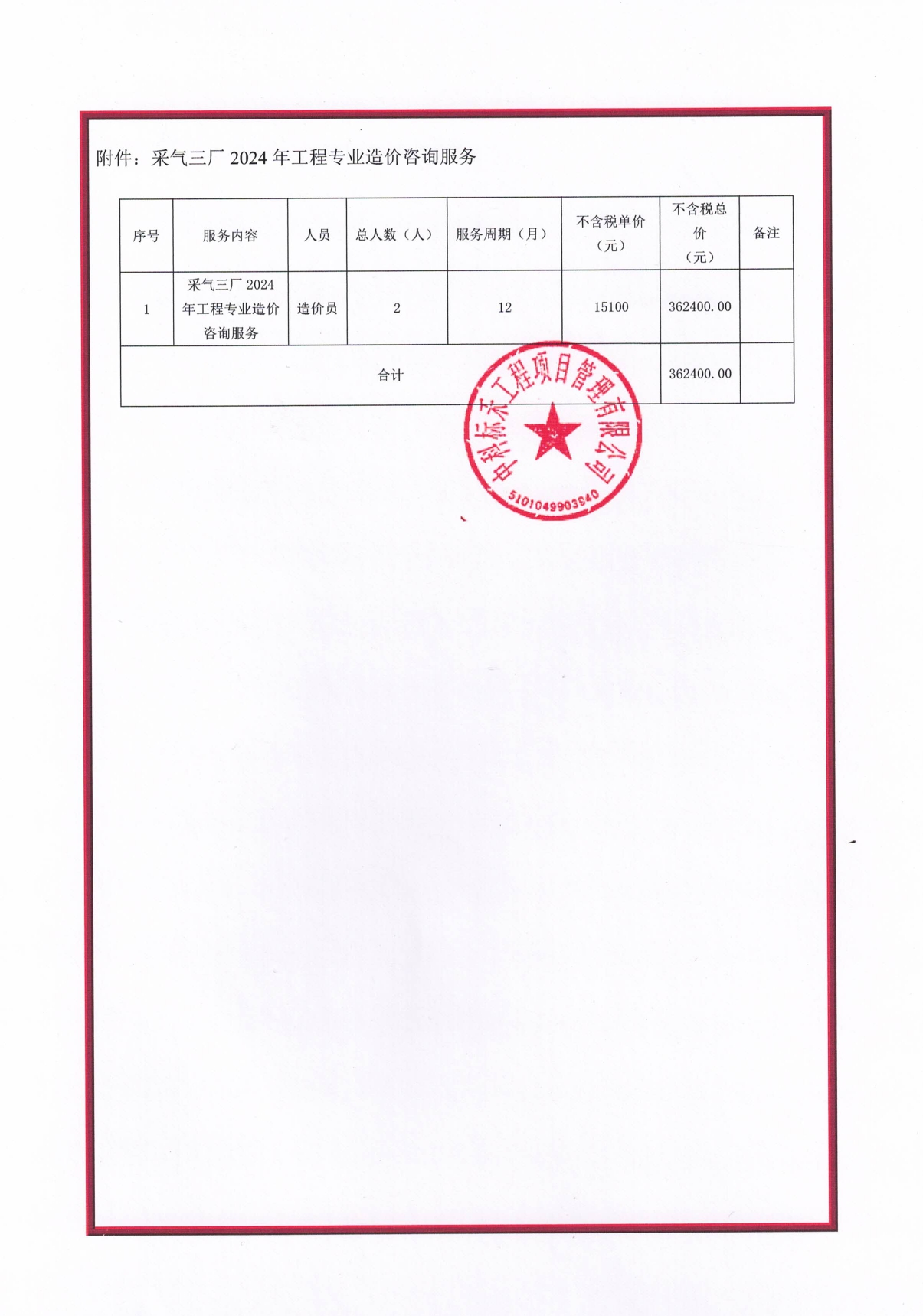 采氣三廠2024年工程專業(yè)造價(jià)咨詢服務(wù)
