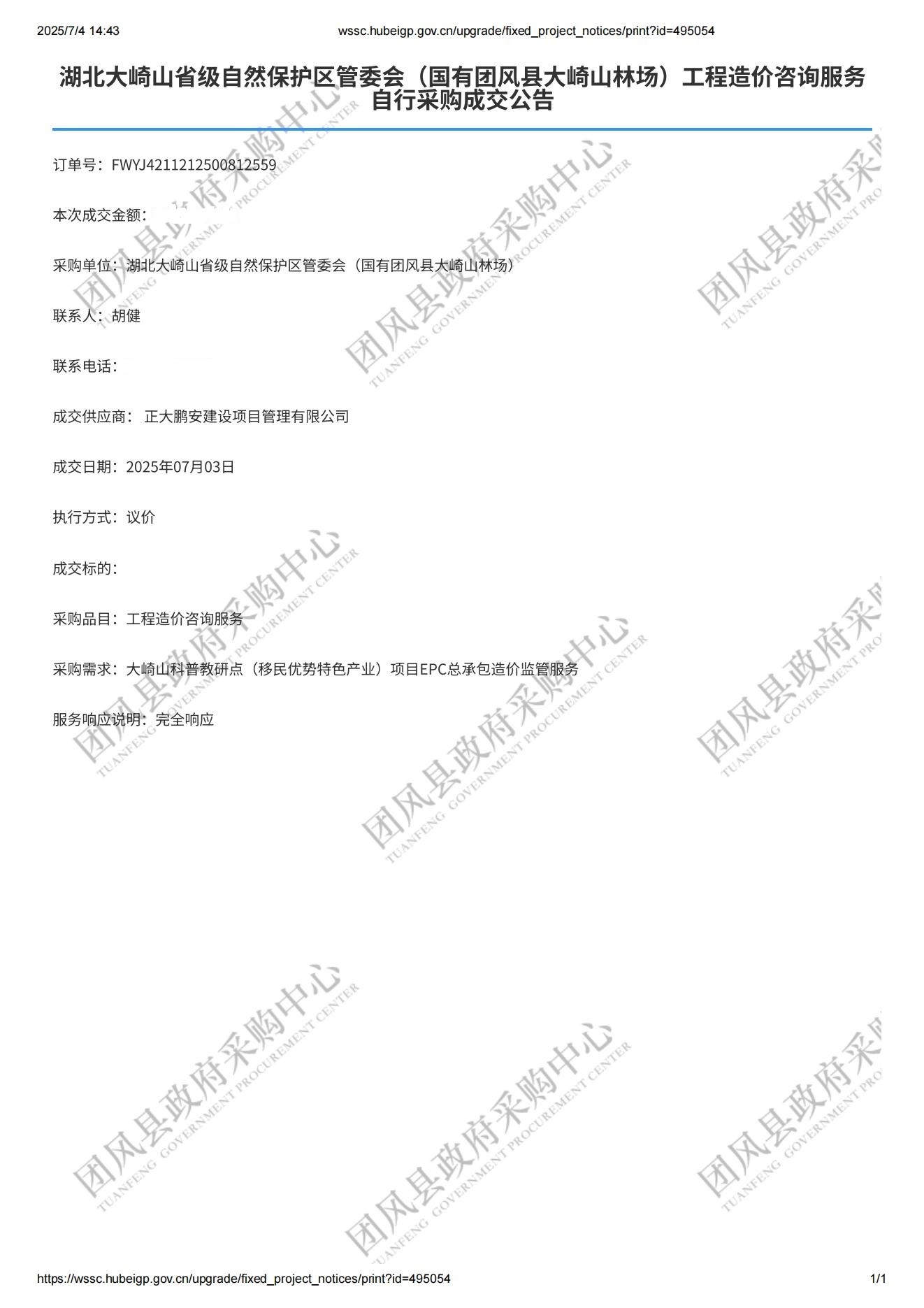 2025年7月3日,經(jīng)評(píng)標(biāo)委員會(huì)綜合評(píng)審,招標(biāo)人確認(rèn),正大鵬安中標(biāo)湖北大崎山省級(jí)自然保護(hù)區(qū)管委會(huì)(國(guó)有團(tuán)風(fēng)縣大崎山林場(chǎng))工程造價(jià)咨詢服務(wù)。