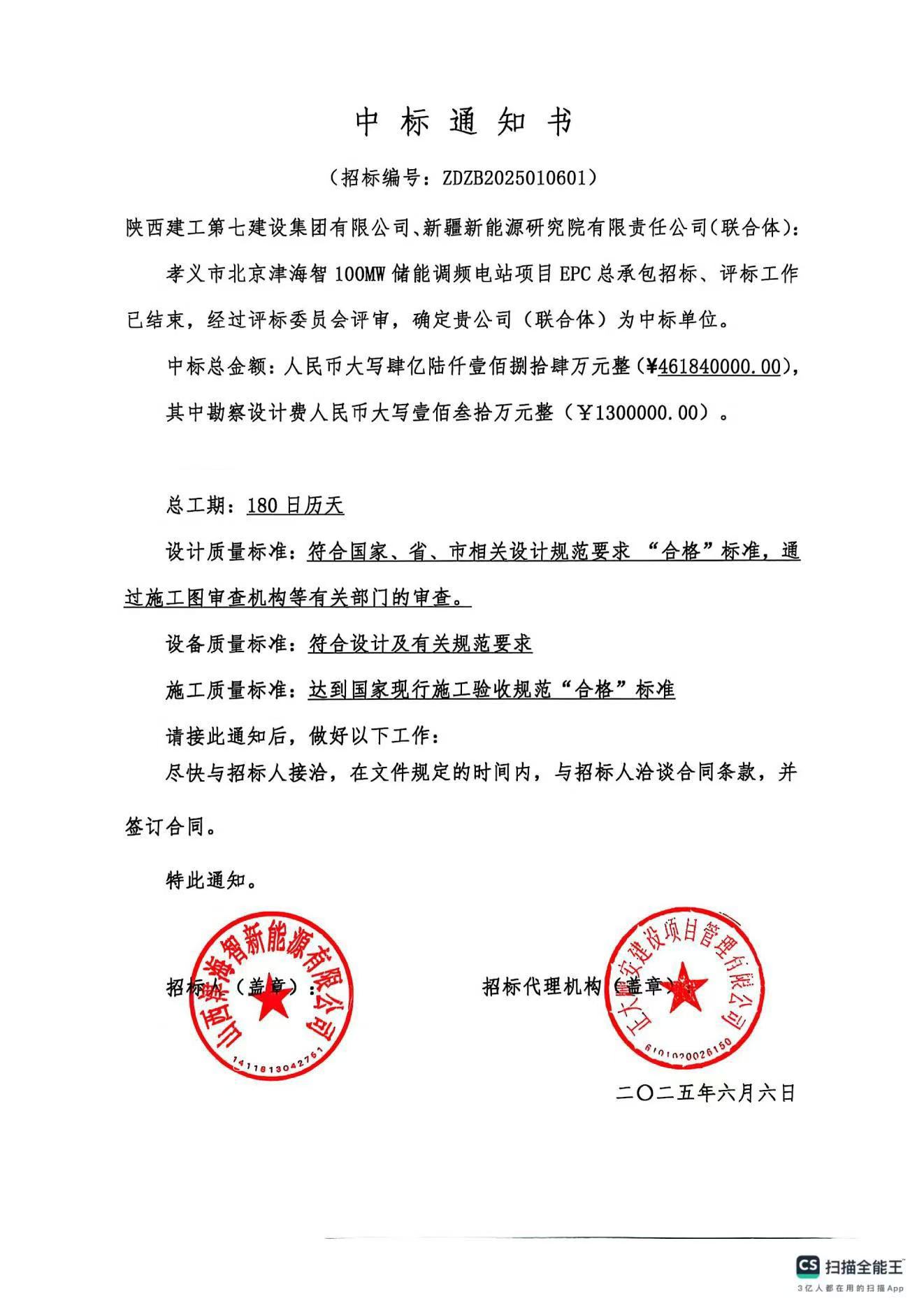 孝義市北京津海智100MW儲(chǔ)能調(diào)頻電站項(xiàng)目EPC總承包及監(jiān)理