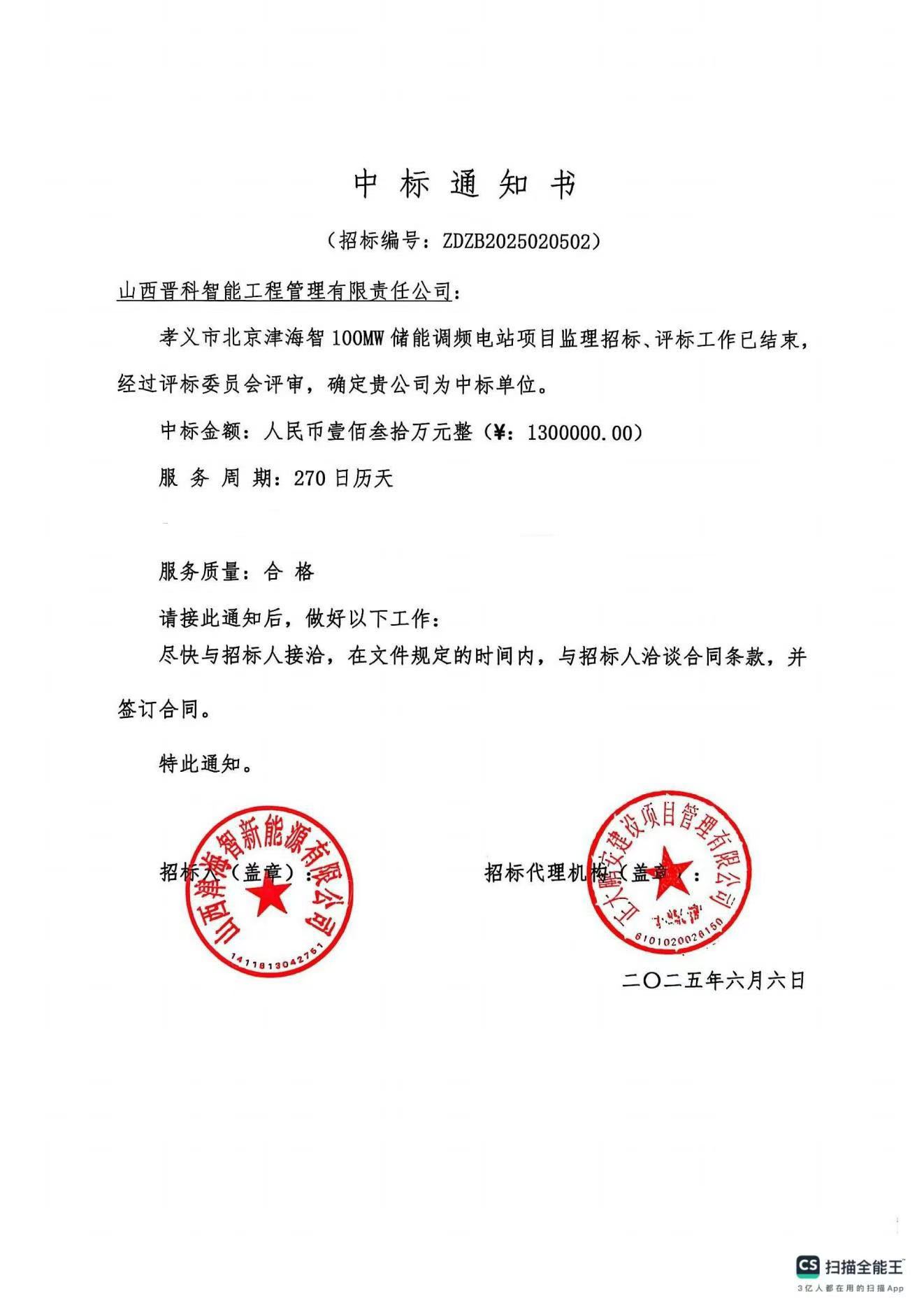 項(xiàng)目名稱:孝義市北京津海智100MW儲(chǔ)能調(diào)頻電站項(xiàng)目EPC總承包及監(jiān)理