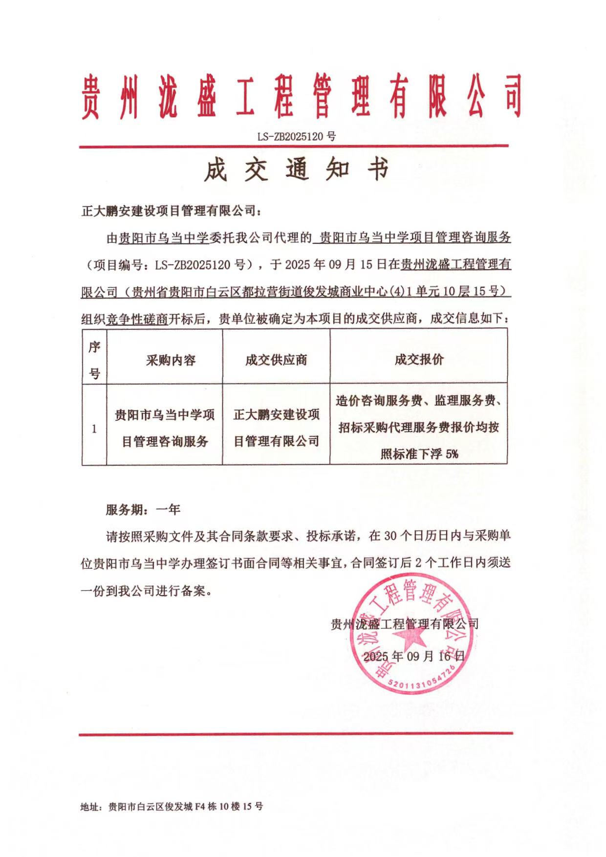2025年9月15日,經(jīng)評標委員會綜合評審,招標人確認,正大鵬安中標貴州省貴陽市烏當中學項目管理咨詢服務項目。